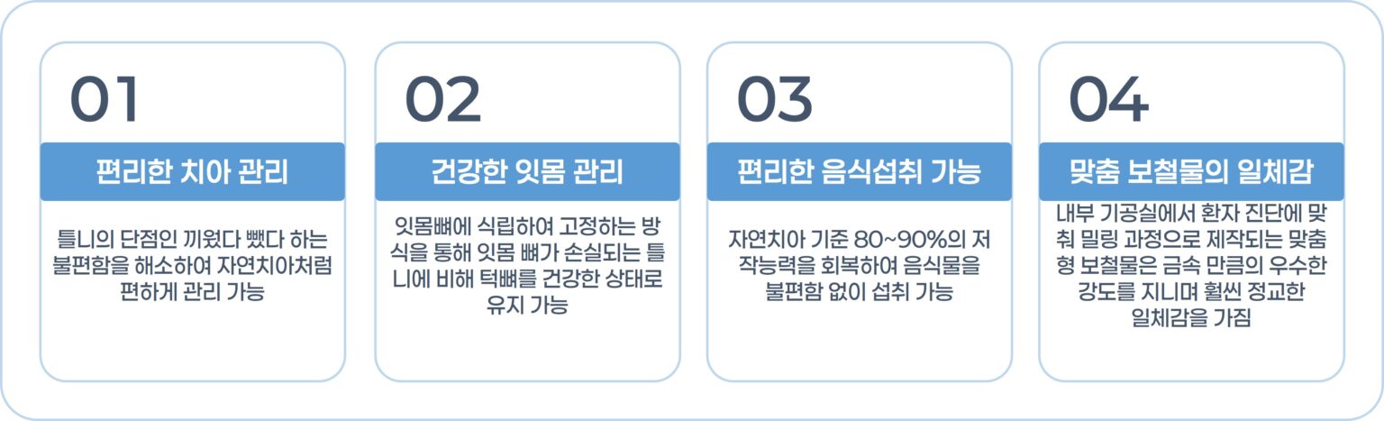 전체 치아가 하나도 남지 않았거나 다수의 치아를 상실했을 때 진행하는 시술입니다.